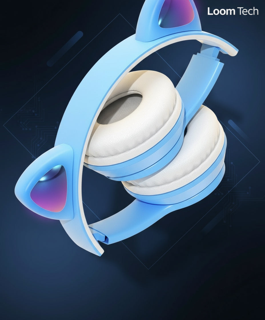 The Bluetooth-compatible connection ensures fast pairing and stable performance, while soft, cushioned ear pads provide hours of comfortable wear. Whether you’re gaming, studying, or traveling, the LoomTech Cat Ear Headphones make every moment more vibrant.